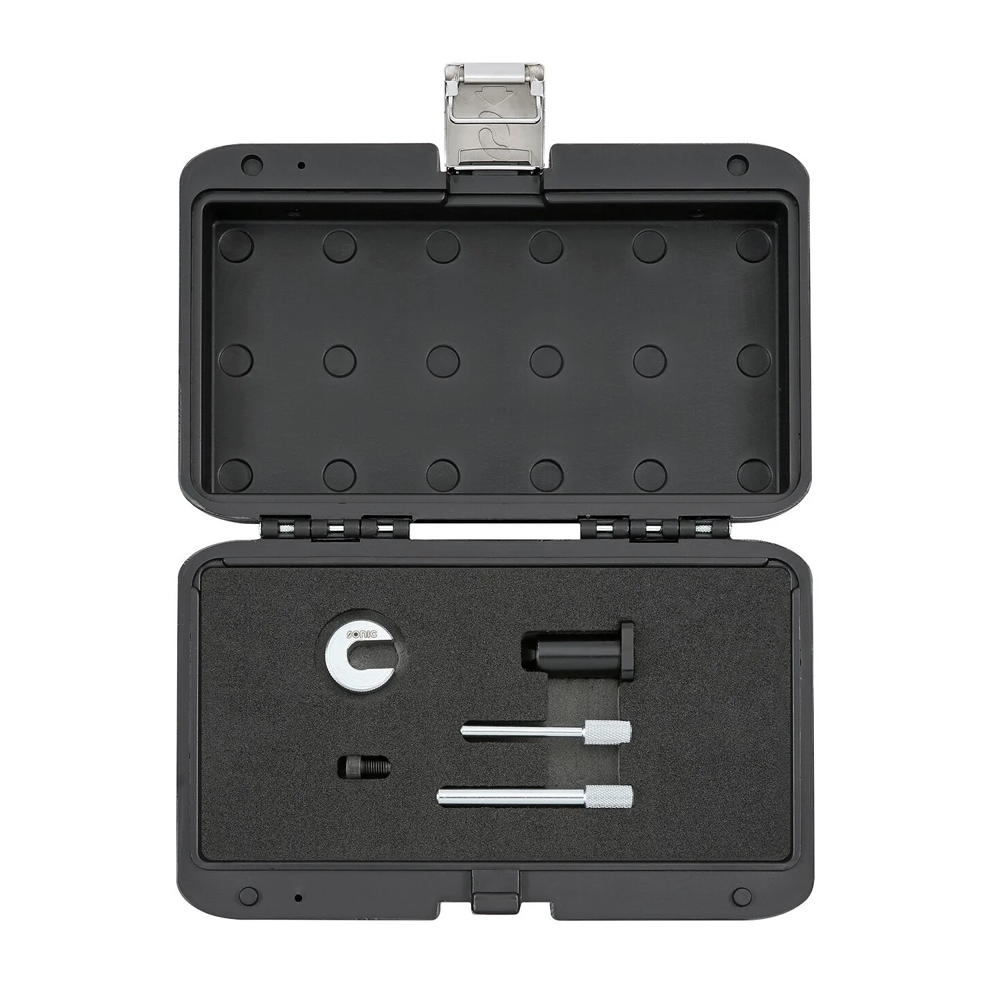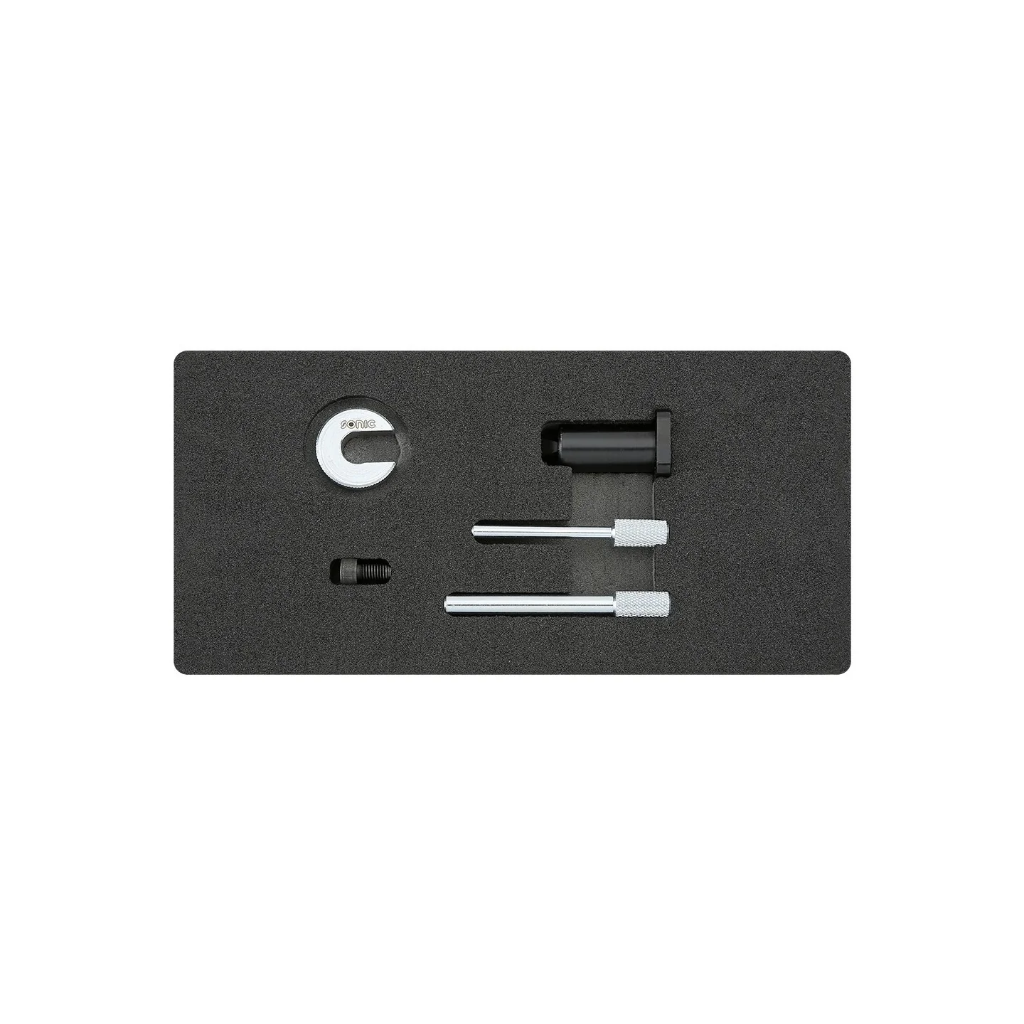 The 829018 has been developed for Fiat 2.8 diesel engines that are found in the Fiat, Iveco and PSA van ranges. This kit provides all the tools required to set the timed components when replacing the timing belt. The kit also includes the components require to lock the flywheel when undoing and tightening up the front pulley fixings as well as the special spacer to hold the belt tensioner in its fully retracted position.