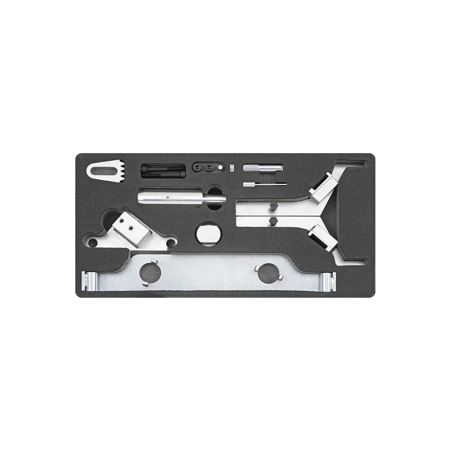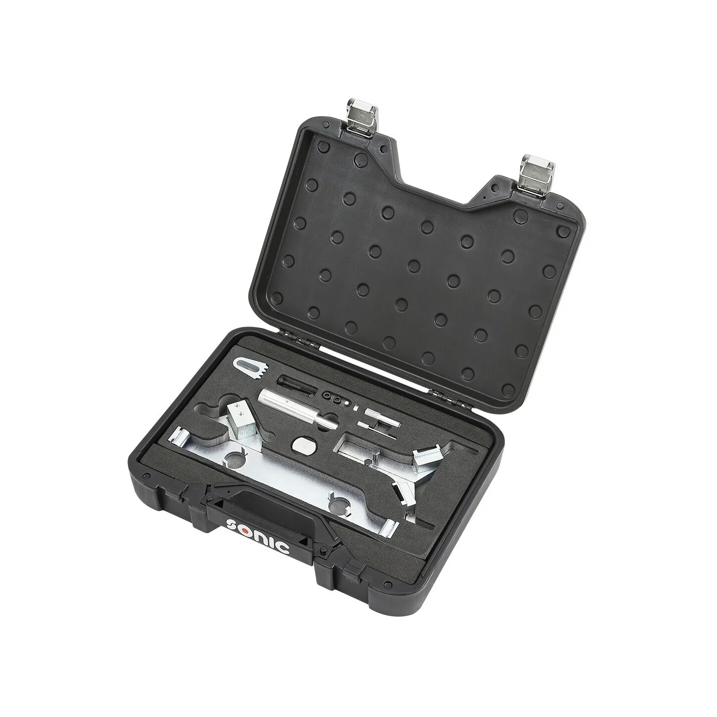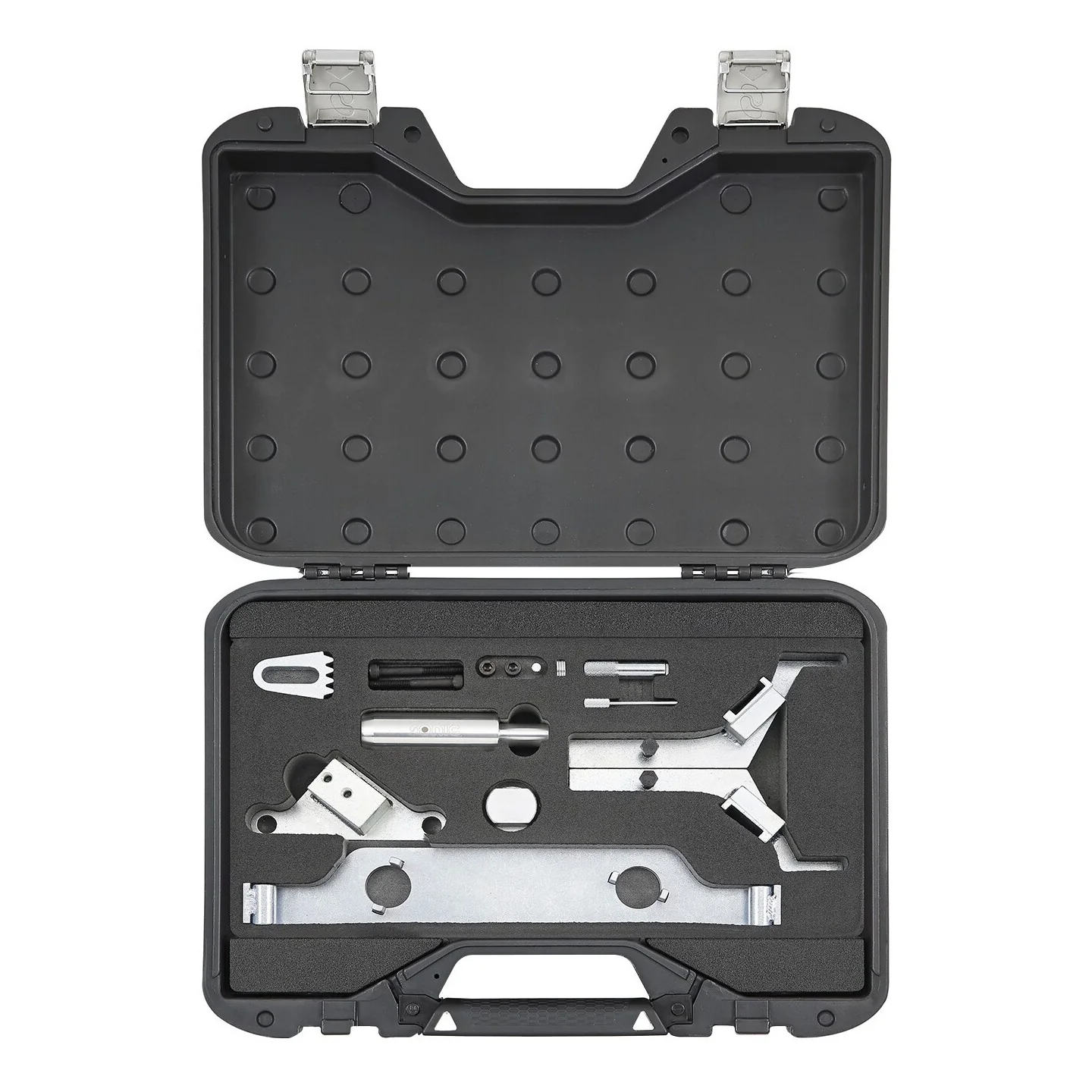 Developed specifically for the high power output 2.0 litre and 2.4 litre twin cam turbo charged petrol engines found across the GM, Chevrolet and Saab ranges. This kit provides all the components required to set and hold the camshafts, crankshaft and chain tensioner components when performing major engine work or replacing the cam chain and associated components.