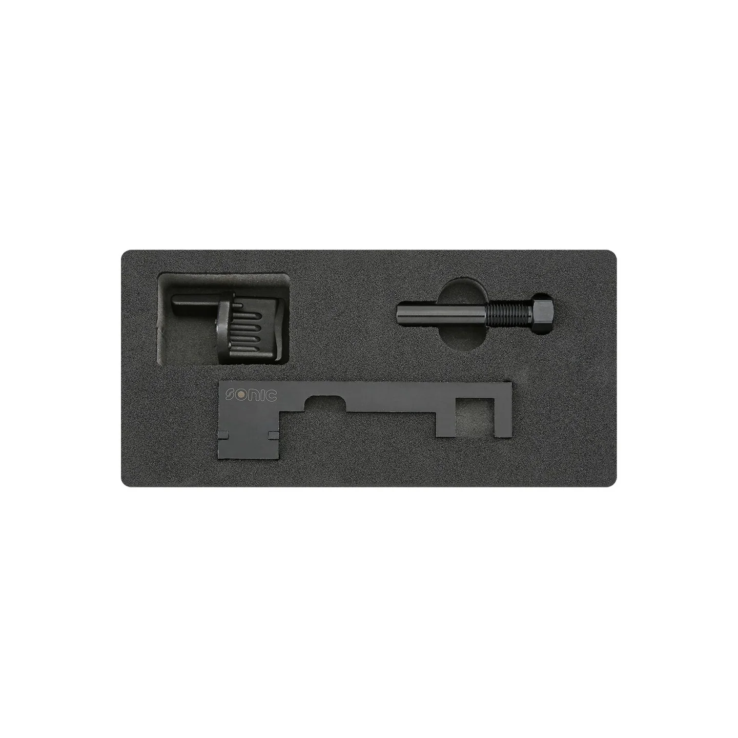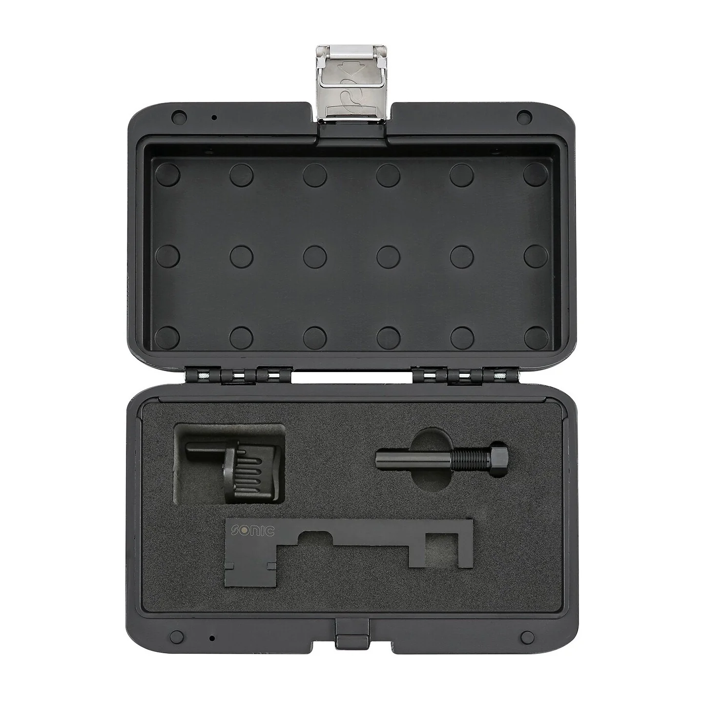 The 829067 kit has been designed to offer the essential timing tools required for the 1,0lt 2 cylinder VAG engines from 2011 on. Description: 829067 is a 3 piece kit consisting of the components required to lock the crankshaft, cam pulleys, camshafts and crankshaft in their timed positions to allow the removal and replacement of the camshaft timing belt.