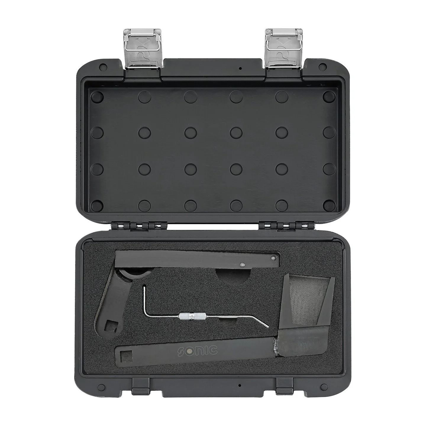 This tool set simplifies the removal and replacement of the serpentine belt when servicing or repairing the W10, W11 1600cc engines as used in the Mini One, Cooper & Cooper S (pre. 2007 Mk1), Mini Convertible (pre 2009 Mk1).