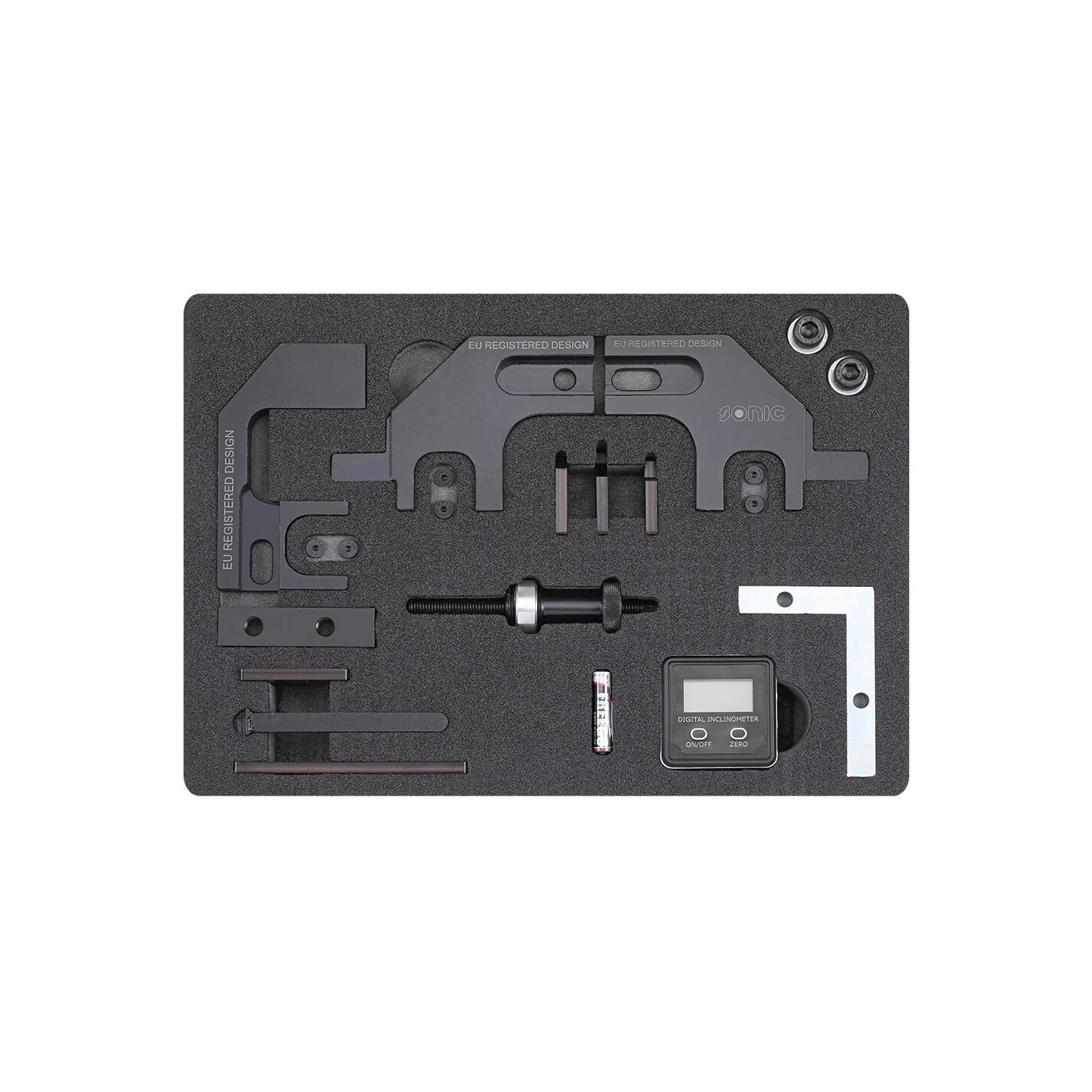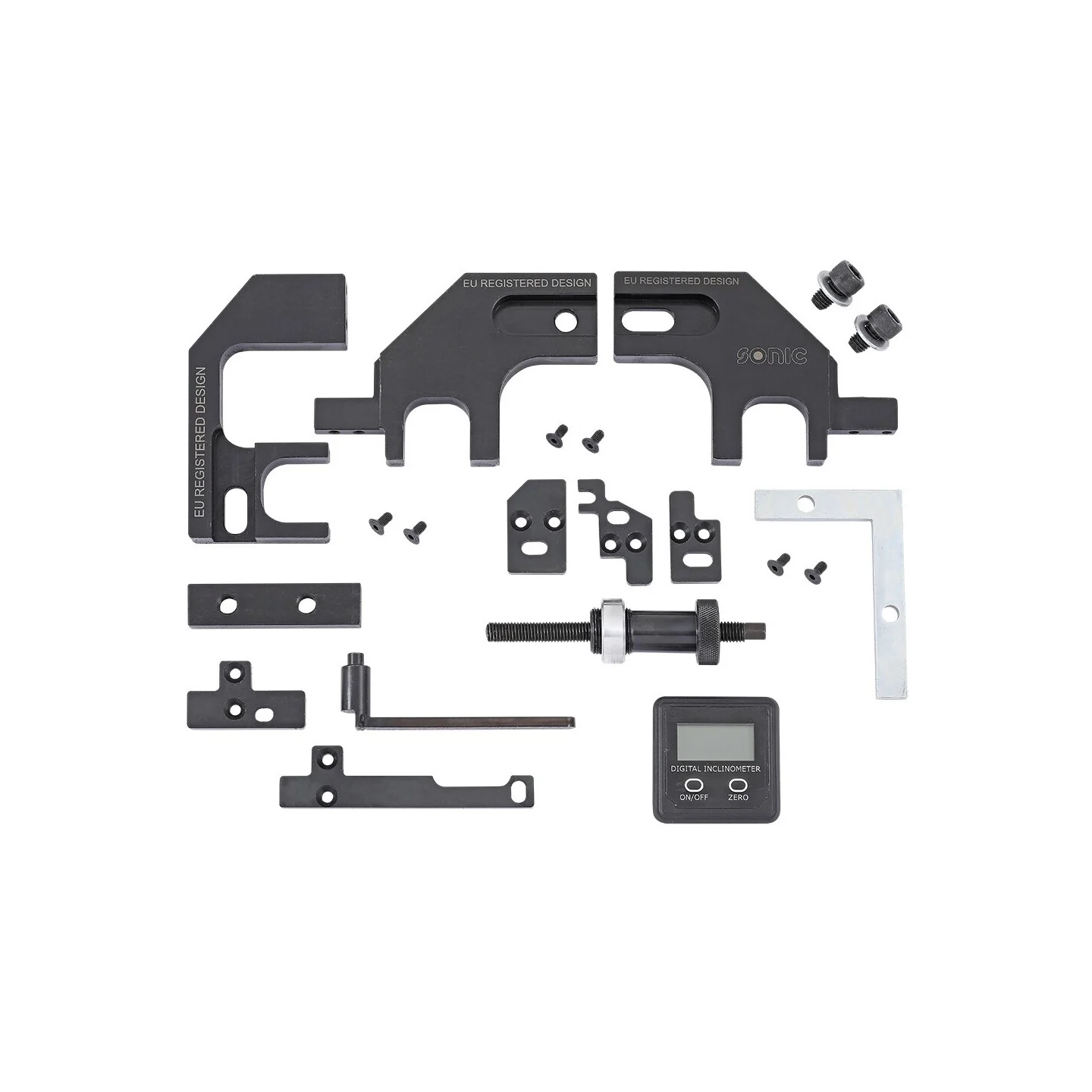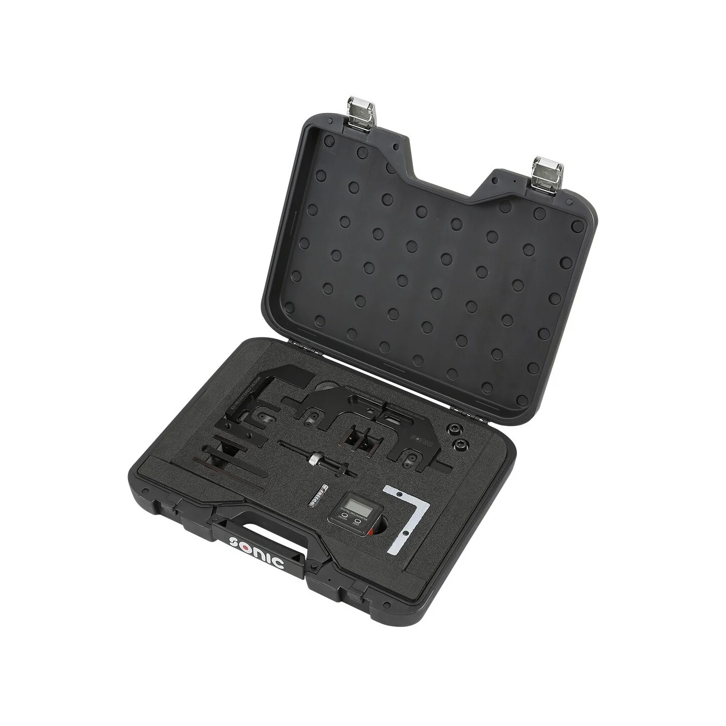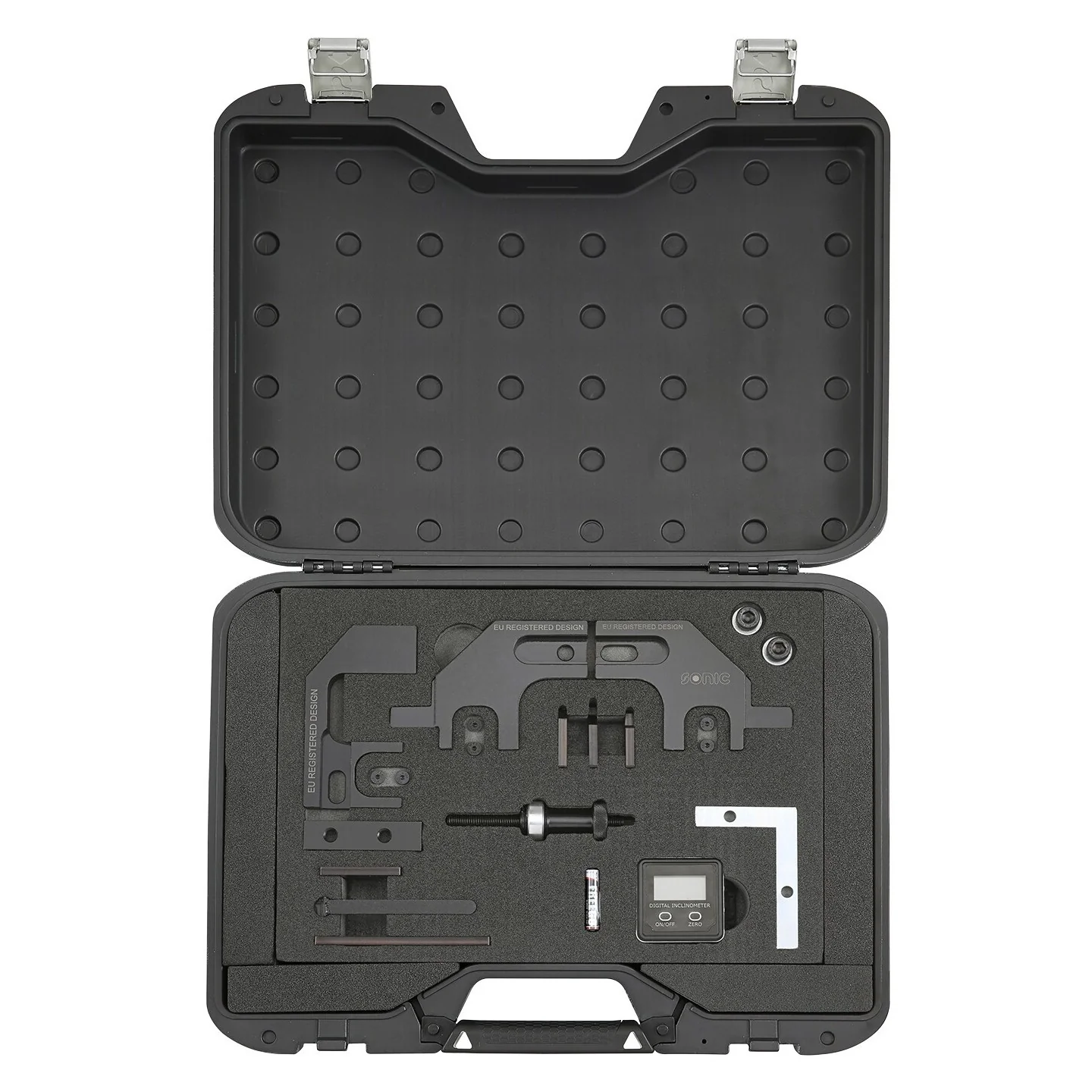 A complete engine timing kit designed to allow the timing to be set and checked on the 1.4 | 1.6 PSA | BMW engines found in the BMW, Mini and PSA ranges. Engine codes covered include N12, N13, N14, N16 and N18 for BMW | Mini and EP3, EP6 for Citroën | Peugeot from 2006 to 2016.