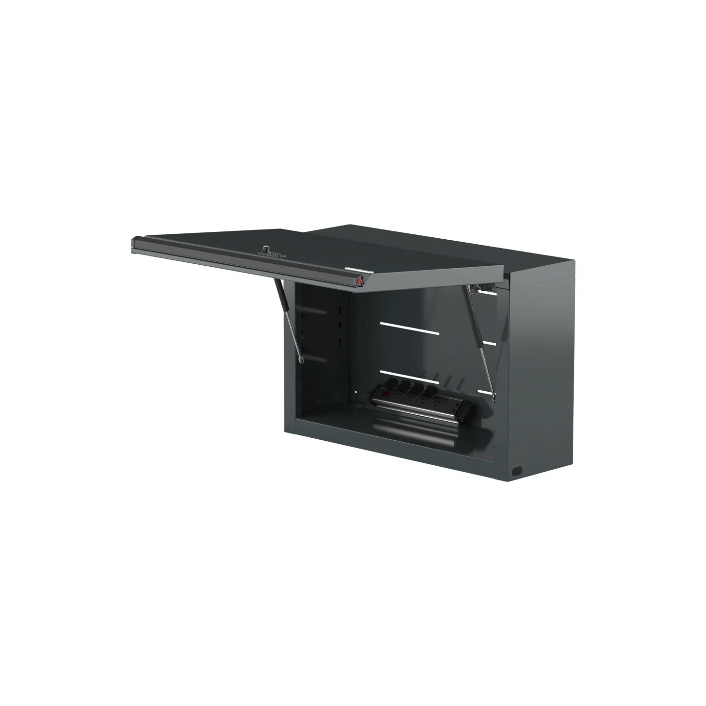Our MSS+ wall cabinets are outfitted with high quality gas struts and Austria-made Blum soft close hinges. These features were designed to improve the overall accessibility and convenience when using the overhead storage wall cabinets. The wall cabinets are equipped with integrated paper dispenser and ventilation slots on the backside of the cabinet.