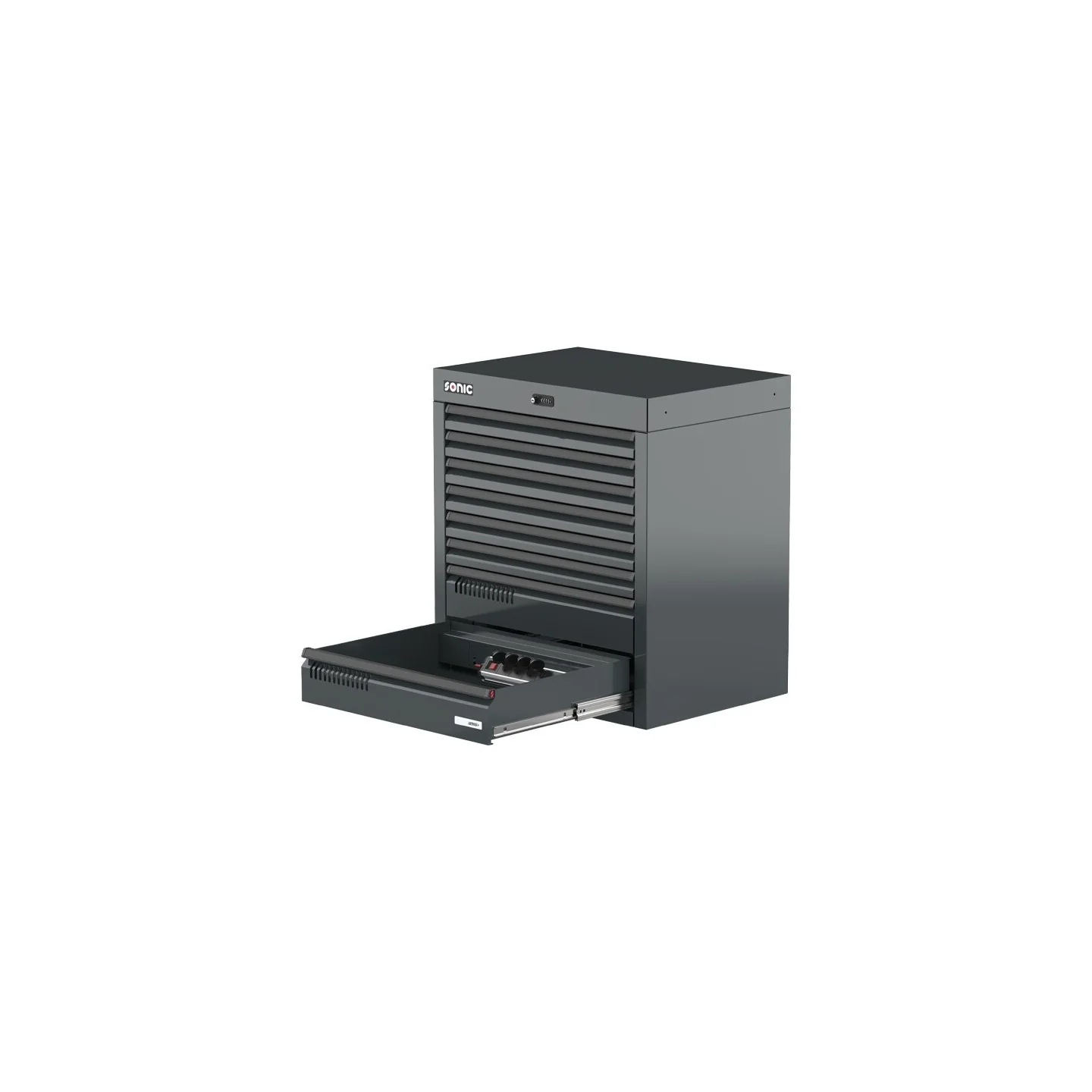 All MSS+ drawer cabinets are separately available, have various dimensions and specifications. Every drawer cabinet has a high quality, durable powder coating finish, provided with Dutch-made ball-bearing slides (load capacity 123kg/230kg) with unique ball cage design. The drawer cabinets are unique due to the power bars and ventilation slots in high drawers. The MSS+ cabinets ensure a premium workplace for an ultimate workflow.