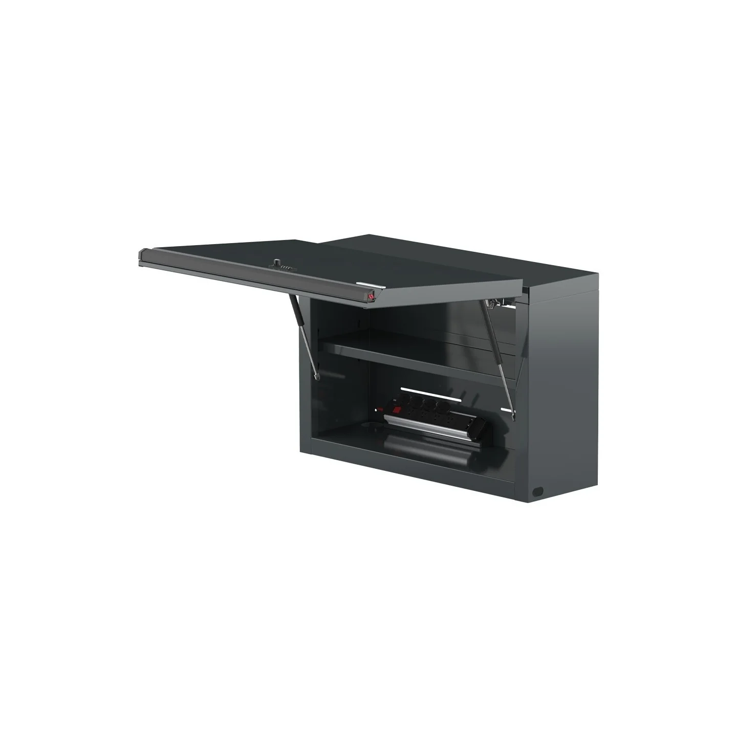 Our MSS+ wall cabinets are outfitted with high quality gas struts and Austria-made Blum soft close hinges. These features were designed to improve the overall accessibility and convenience when using the overhead storage wall cabinets. The wall cabinets are equipped with integrated paper dispenser and ventilation slots on the backside of the cabinet.