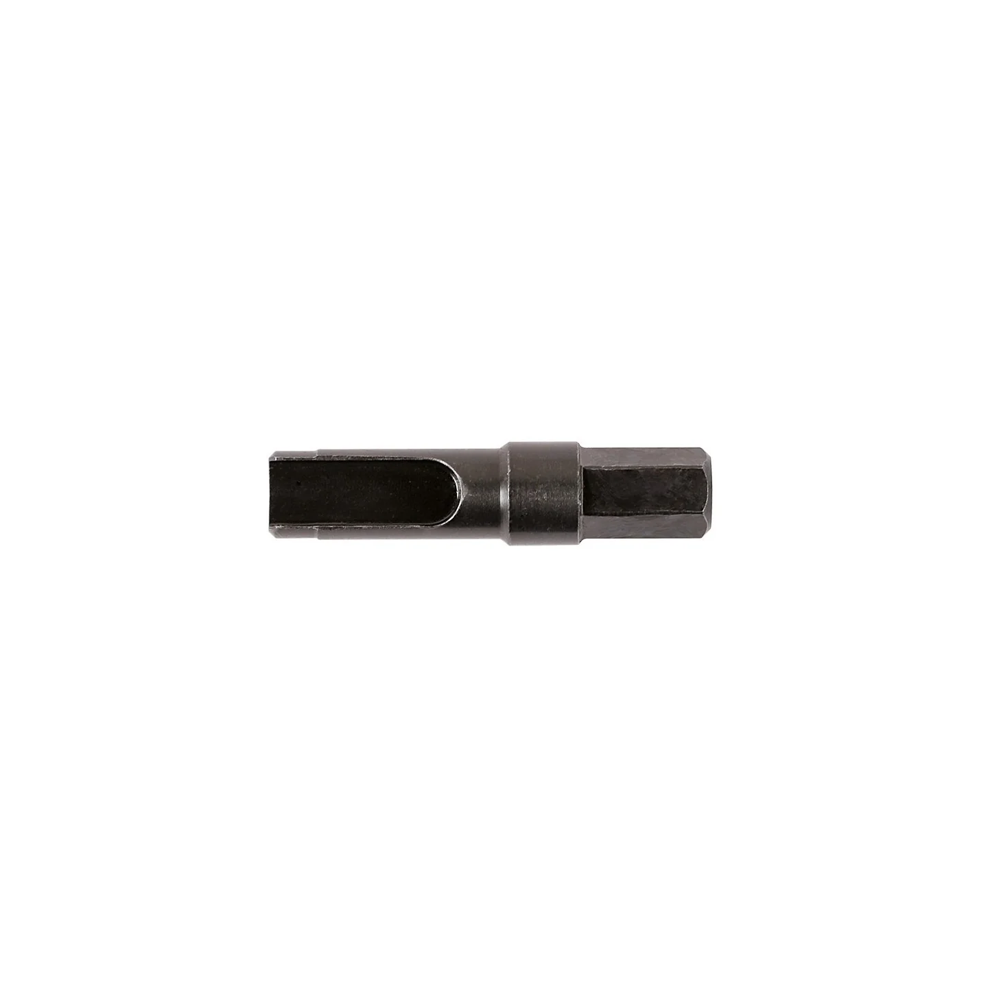 The drain plug has a special connection, for which a special bit is needed. This 1/4” bit has got a hex drive as per DIN 3126 / ISO 1173 C 6.3. Applicable for: Audi, Seat Leon, Volkswagen Golf 7 from 2013.