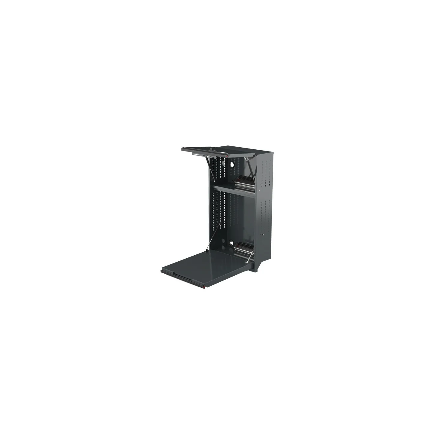 Our MSS+ wall cabinets are outfitted with high quality gas struts and Austria-made Blum soft close hinges. These features were designed to improve the overall accessibility and convenience when using the overhead storage wall cabinets. The wall cabinets are equipped with integrated paper dispenser and ventilation slots on the backside of the cabinet.