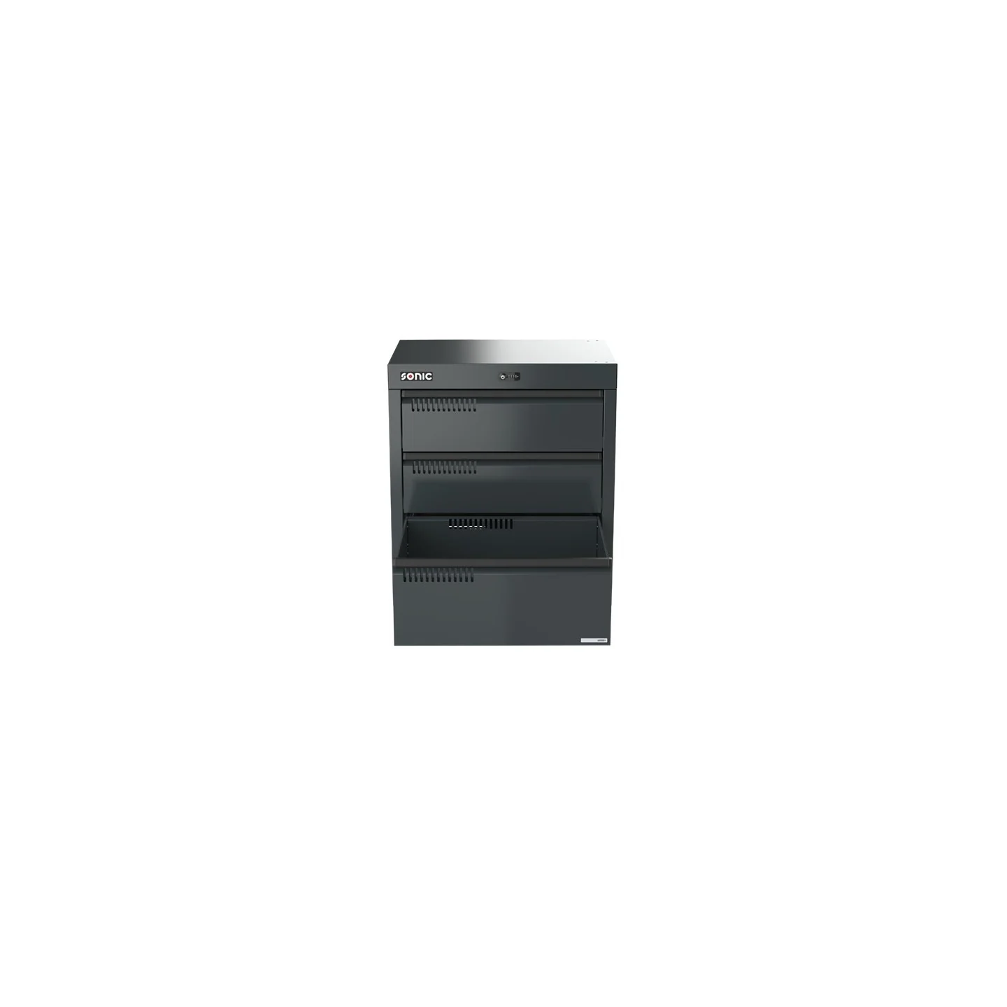 All MSS+ drawer cabinets are separately available, have various dimensions and specifications. Every drawer cabinet has a high quality, durable powder coating finish, provided with Dutch-made ball-bearing slides (load capacity 123kg/230kg) with unique ball cage design. The drawer cabinets are unique due to the power bars and ventilation slots in high drawers. The MSS+ cabinets ensure a premium workplace for an ultimate workflow.