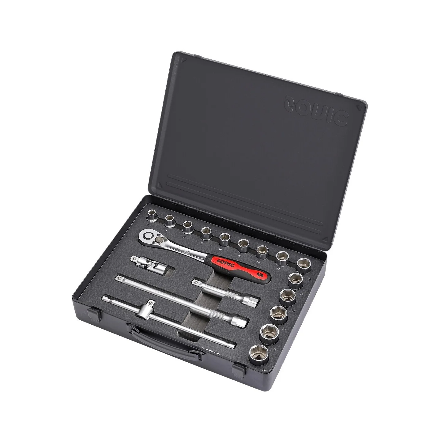 Socket set in metal case 1/2'', 19-pcs