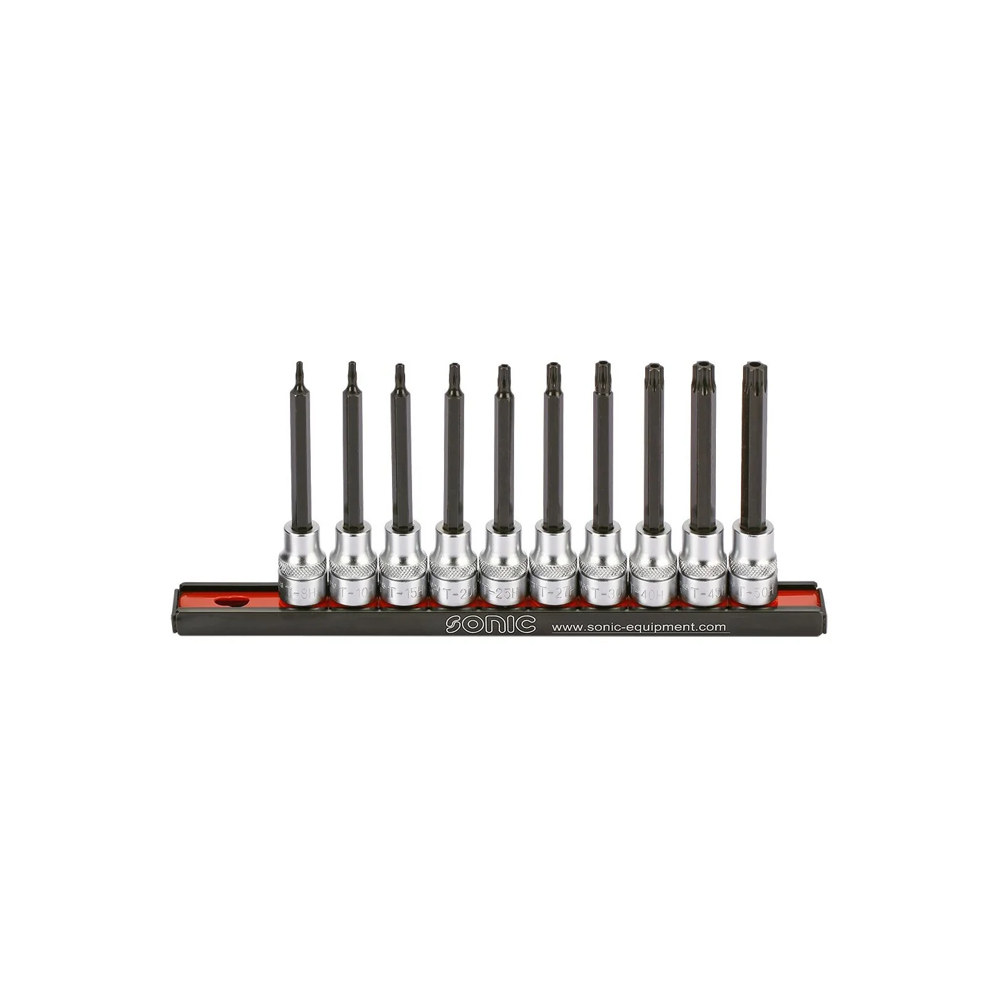 Bit socket 3/8" TX tamperproof long on rail 10-pcs.