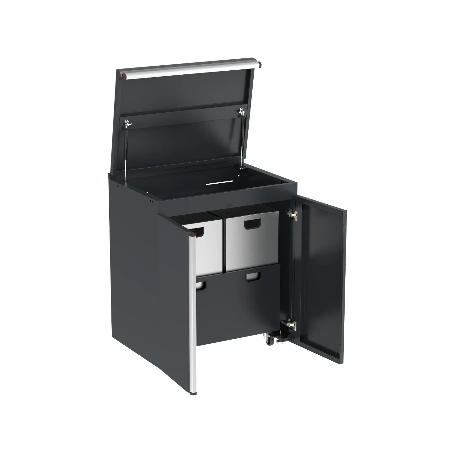 The Sonic MSS+ 890mm waste bin cabinet is the perfect solution for all professionals who require high quality storage solutions. The cabinet has a load capacity of 230kg and the user-friendly waste bin compartment makes this module an indispensable part of any workplace.