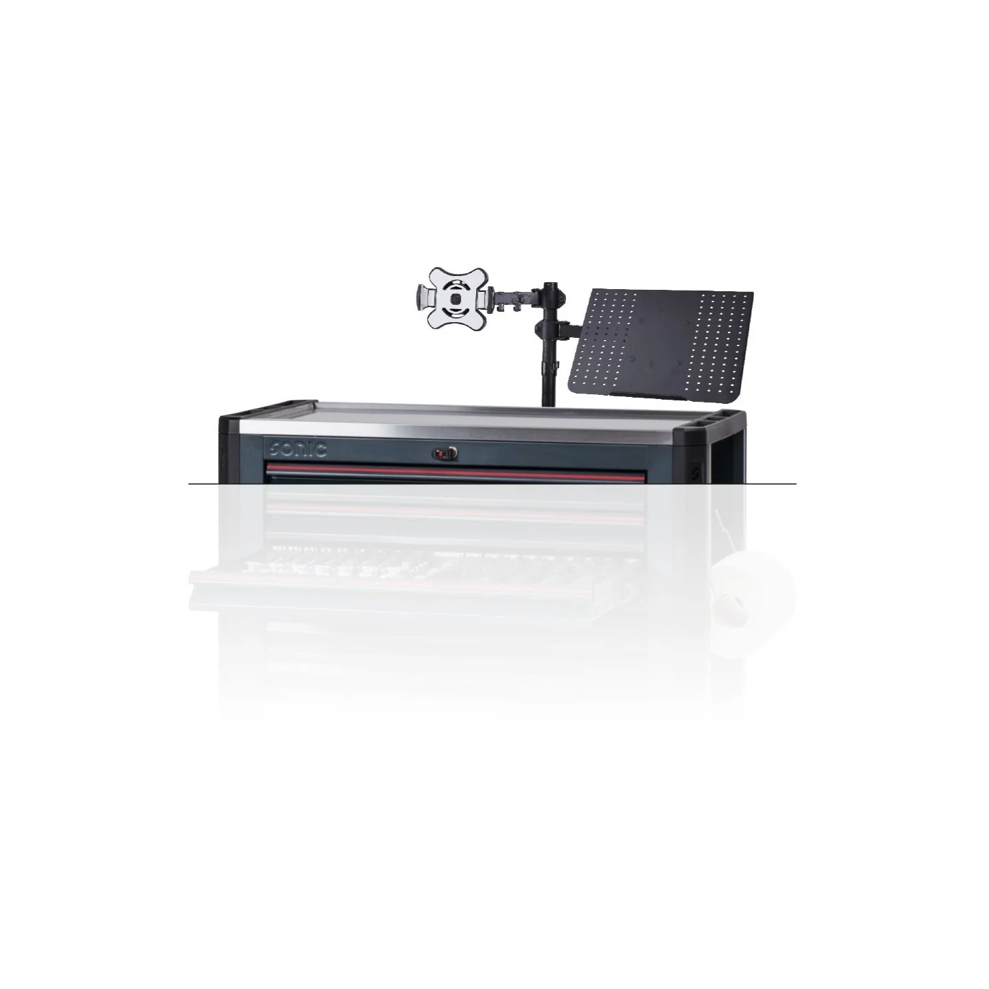 Tablet mount for NEXT toolbox Tablets are securely fixed with flexible clamp mechanism Easy and quick fixing/release of tablet Fits tablets up to 13’’, with a 1kg maximum weight Can only be used in combination with NEXT laptop holder #49015 |