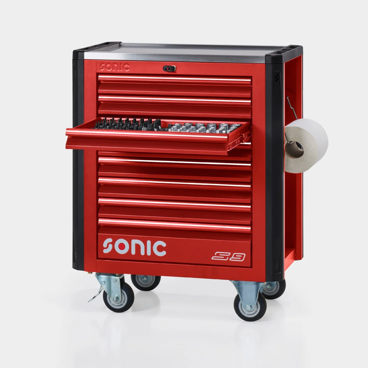 The Sonic NEXT S9 toolbox is our recommended solution for technicians looking for a basic to intermediate toolset. What makes this toolbox our bestselling and recommended unit is not only its size in height, but it’s advantage of space savings design at only 83cm in width and 52cm in depth. This combination of overall size matched with its storage space allows this box to be the #1 choice within the range.
